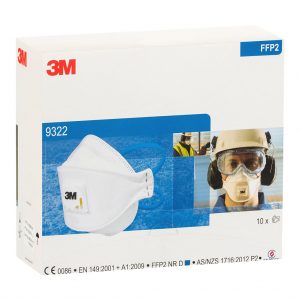 3M Respirator Aura 9322A+ Flat Fold Standard White P2 Pk/10